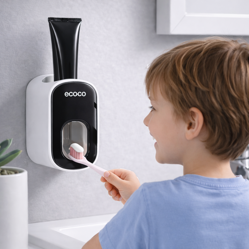 Wystarczy przyłożyć szczoteczkę – Wyciskacz™ sam wyciśnie odpowiednią ilość pasty. Prościej się nie da.